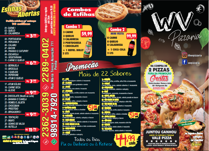 Welcome to Pizzaria WV | Delivery, a gem nestled in the heart of São Paulo, where pizza dreams come true. Located at Rua Maria Teresa Assunção, 711, this pizzeria is renowned for its exceptional culinary creations that dazzle the palate. Customers rave about the quality and flavor of the pizzas, describing them as "gastronomic masterpieces" that offer a "burst of flavor" in every bite.